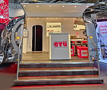 | Sonderanfertigung eines Event- und Infostandes. Ausgestattet u.a. mit : • Möbelanfertigungen • Counter, Prospektregal beleuchtet • Sitzecke mit Polster • Kühlschrank, Bierzapfanlage, Mikrowelle • freistehendes Glas Glasregal aus Edelstahl • Waschbecken mit Spülboy • Wassertanks und Citywasser-Anschluss • Heizung und Staukastenklimaanlage • Sonnensegel auf der Türseite • Bühnenklappe mit Seitenschals • Unterbodenbeleuchtung LED/RGB stripe • seitl. Fenster LED/RGB stripe hinterleuchtet • Stufenpodest, LED/RGBW hinterleuchtet • Aussenfolierung nach Kundenwunsch Für die Filmansicht bitten diesen FB Link klicken --- Custom fabrication of an mobile event and information stand. Equipped with: • custom-made furniture • illuminated counter and brochure rack • free-standing stainless steel glass shelf • seating area with cushions • refrigerator, beer tap system, microwave • sink, connection for coffee machine • water tanks and city water connection • heating and storage compartment air conditioning • awning on the door side • stage flap with side curtains • step platform, LED/RGBW backlighting • side vista windows with LED/RGB stripe backlighting • design foiling on the outer skins Click this FB video link Click IG reel link to have a look before completition |
