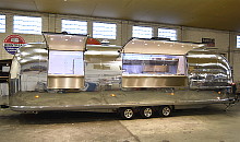 FACTS • mobile professional kitchen • made for industrial use, triple axis • massive 3,5 t galvanized steel chassis • 400V / 16-32 Ampere • 2 x 11 liters LPG-gas bottles • Stainless steel work without wooden coire, HACCP-standard • 2 Design-shelves, made of stainles-steel • 1 sales-hatch, width 1,1 meters • 1 sales-hatch, width 2,5 meters • sliding window safty glazing, fivepart, lockable • exhaust-hood with 3 motors • K+T ® cooling-equipment, 1.088 liters capacity • 1 Zanussi ® gas-deep fryer with 2 basins • 1 Zanussi ® electric chip scuttle • 1 Zanussi ® gas stove with 2 flames • 2 Zanussi ® neutral elements • 1 Zanussi ® gas grddle plate, with smooth surface • 1 Zanussi ® gas grddle plate, with grooved surface • 1 Rational ® gas-combi oven 6 GN 1/1 • 1 Winterhalter ® dish washer • 1 NordCap ® chest freezer, 209 liters capacity • Soundsystem, with inside and underfloor sonication • LED RGB Stripe, multi-color interior lightning • resin floor with resin coating, and rub-rail all around , with 2 drainage-holes • mirror polished outer skins • transparent wind breaker on the sales hatches